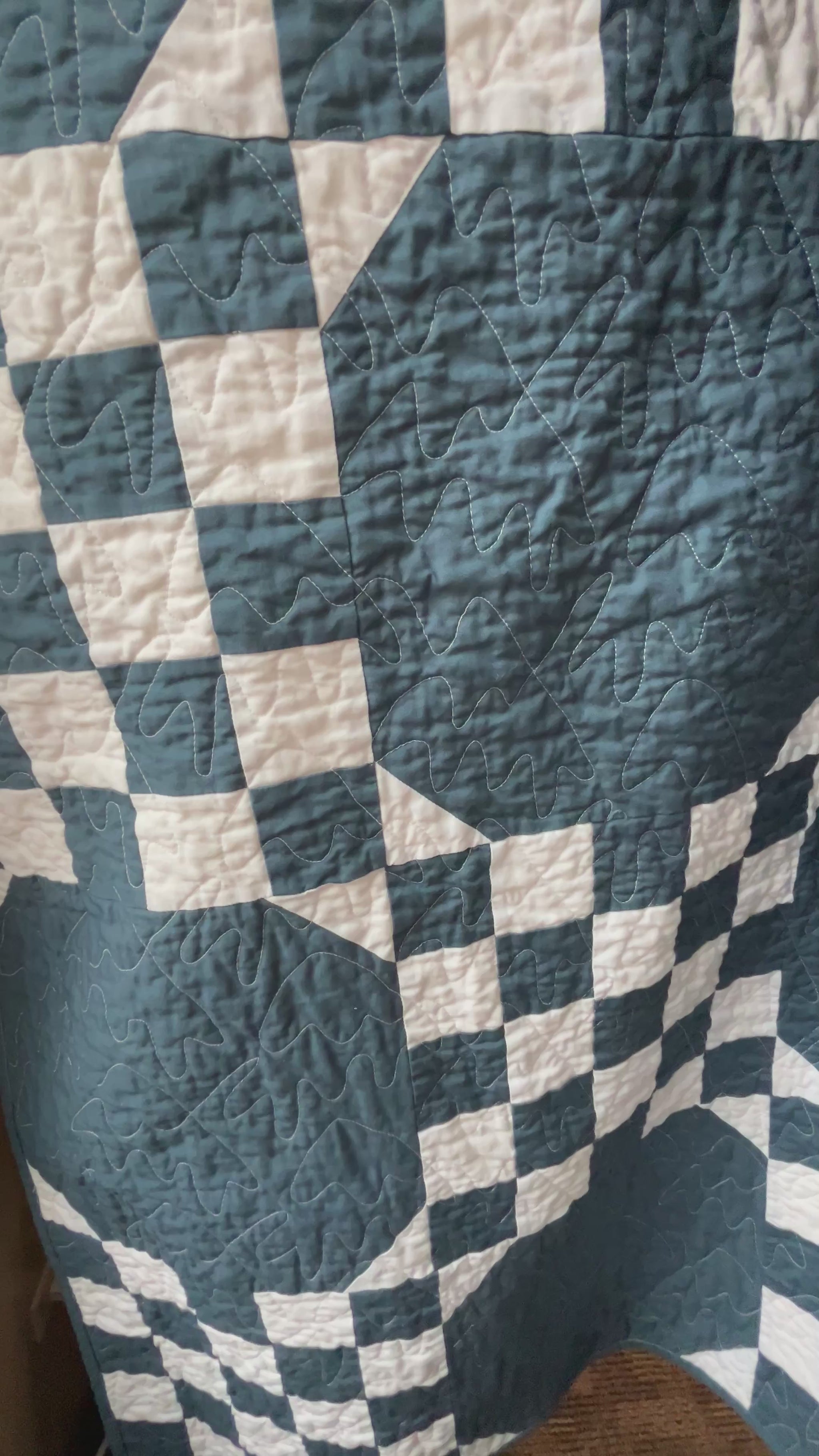 Beautiful as a statement throw, reading nook accent, or handmade gift, this blue and white quilt brings fresh, serene energy to any room.