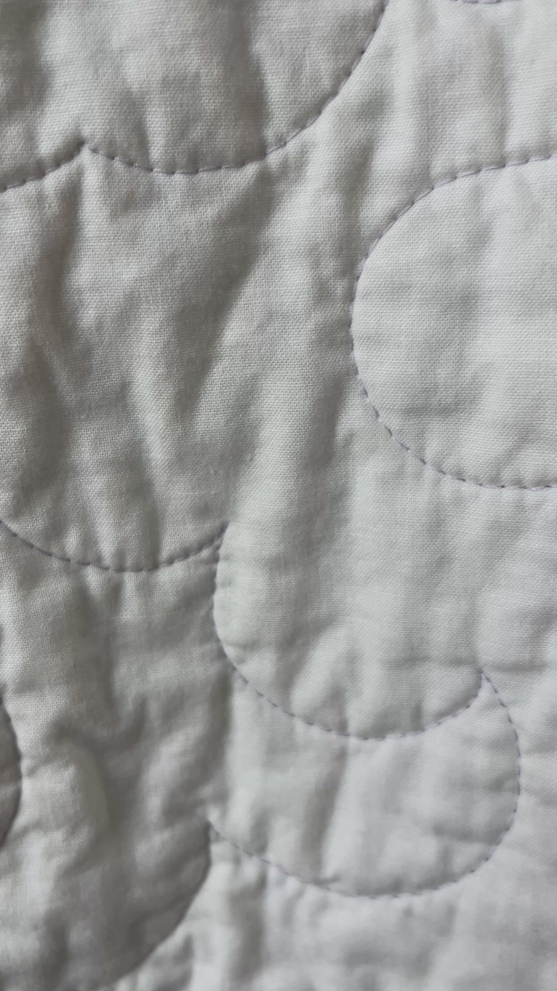 The quilt features Riley Blake lilac purple and off-white cotton fabrics, paired with a fun Rainbow backing in Cloud. Each piece is precision-cut and quilted with care, then prewashed for color fastness and that soft, crinkled texture we all love in a well-loved quilt.